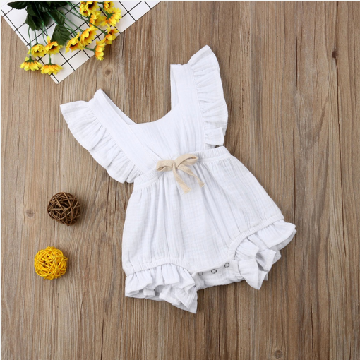 Ruffle-sleeve Solid ロンパース